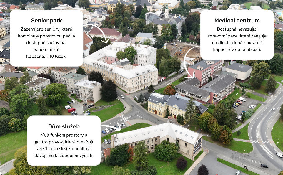 Právě zde má pomoci plánované Medical centrum, umístěné v novém areálu. Jeho cílem je soustředit ambulance, lékárnu a rehabilitace na jedno místo, což je pro méně mobilní pacienty klíčové.