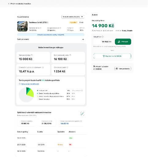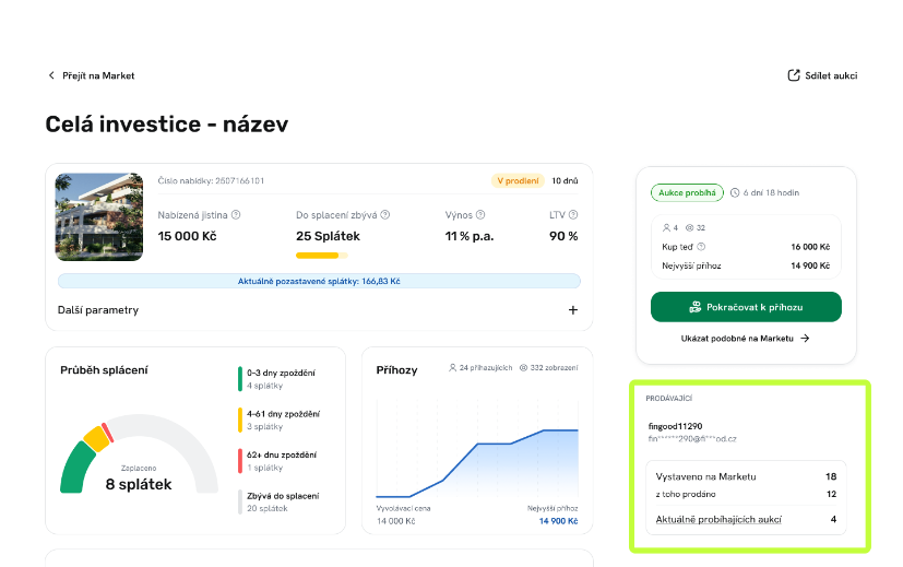 Po skončení aukce má prodávající 24 hodin, aby vaši nabídku potvrdil. Jakmile potvrdí, investice se převede na vás a od té chvíle vám patří i všechny další výnosy. Pokud nabídku nepotvrdí včas, obchod se automaticky zruší a peníze se vám vrátí do peněženky.