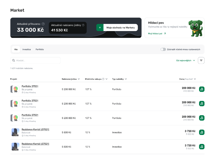 V části Market si vyberete některou z aktivních nabídek. Stačí kliknout na detail investice, která vás zajímá.