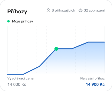 - Přihodit – zadáte částku vyšší než je aktuální nabídka.