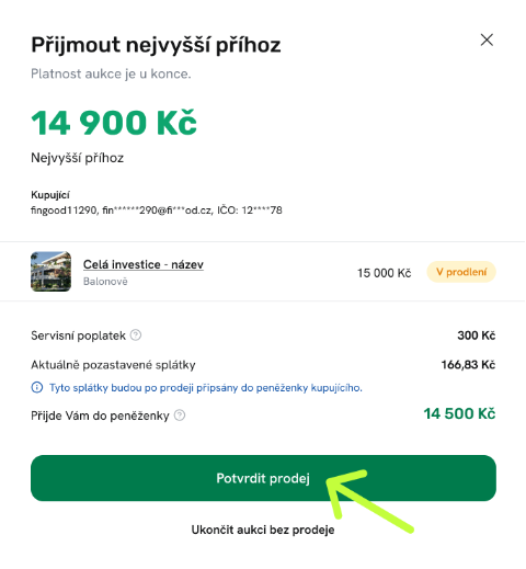 - Cenu Kup teď (volitelně) – pokud chcete, aby si někdo mohl investici koupit okamžitě.