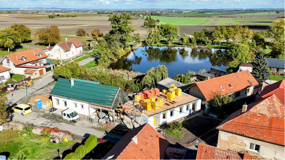 - Montáž střešní konstrukce s tepelnou izolací je v harmonogramu prací zaplánována na listopad, s cílem zabezpečit celou novostavbu proti povětrnostním vlivům a vytvořit tak podmínky pro navazující práce v zimním období a dokončení akce v roce 2026.