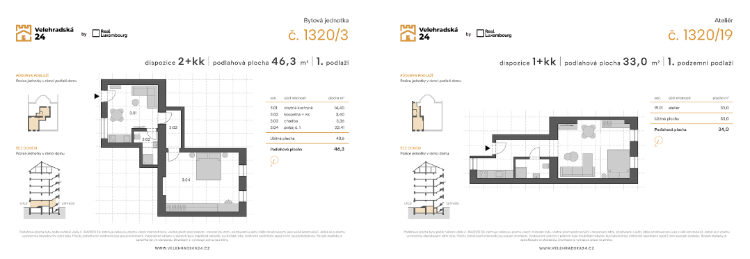 Úvěr je zajištěn dvěma právě dokončenými jednotkami v projektu Rezidence Velehradská 24 na pražských Vinohradech. Bytovou jednotkou č. 1320/3 a ateliérem č. 1320/19. Obě jednotky prošly kompletní rekonstrukcí v roce 2025 a nabízejí moderní standard vybavení.